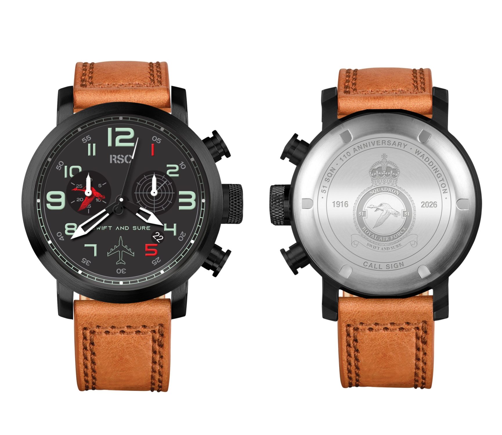 | 51 SQN RAF | Watch with Black Leather Strap, Watch with Cognac Leather Strap, Watch with Black Steel Strap |